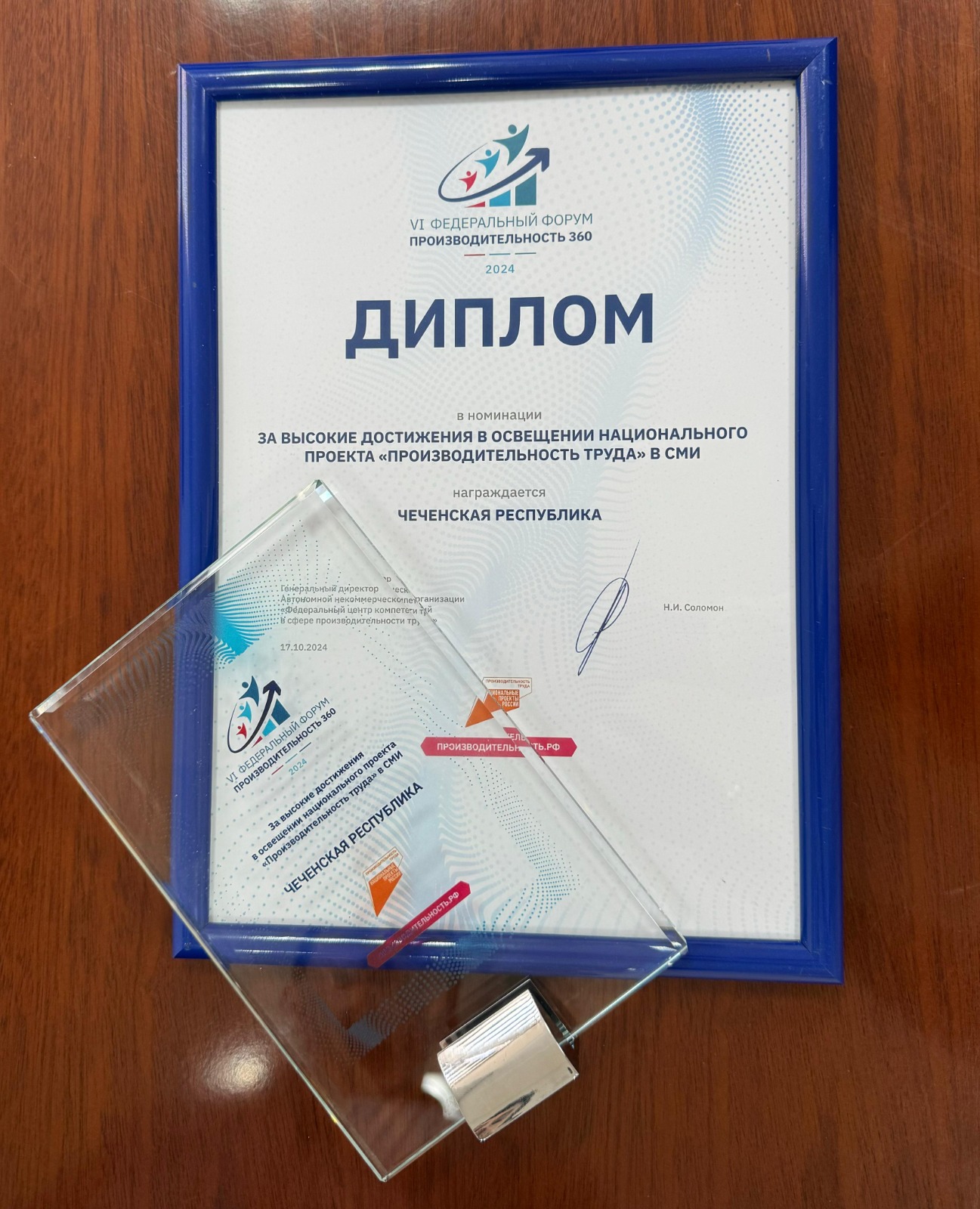 25.10.2024Чеченская Республика награждена дипломом в номинации «За высокие достижения в освещении национального проекта «Производительность труда» в СМИ».